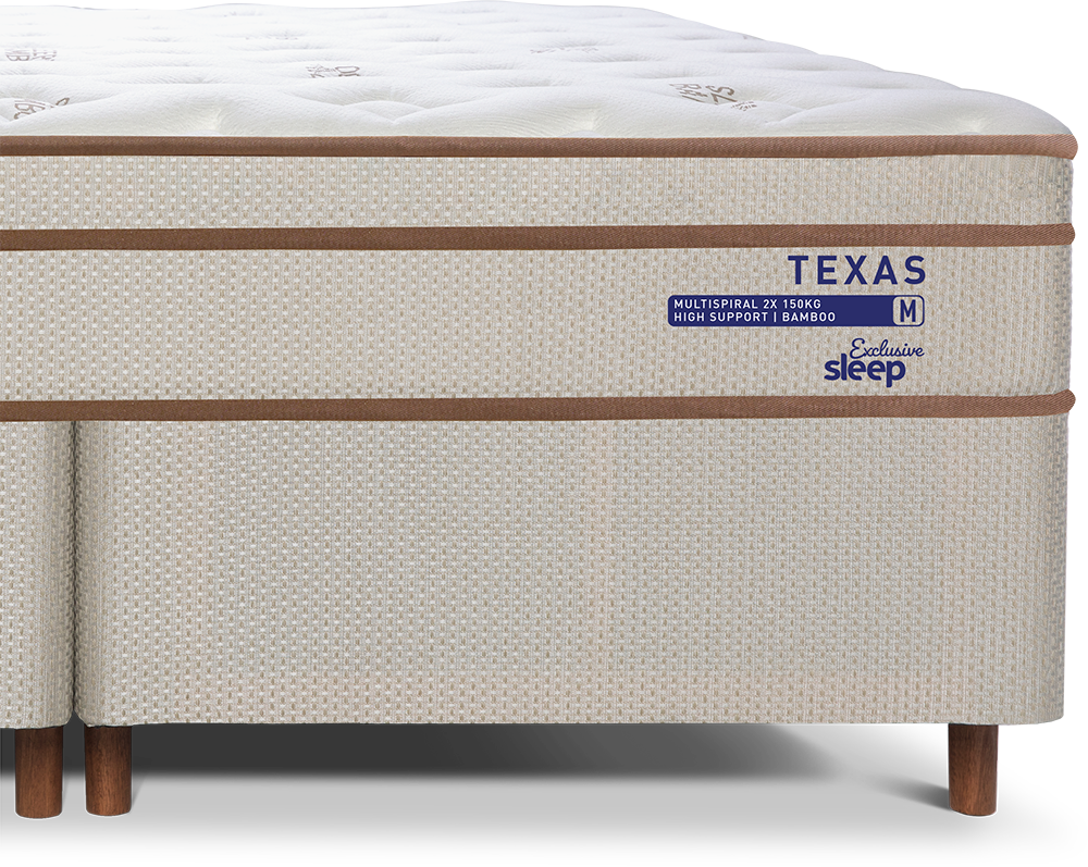 O Texas é um produto com a tecnologia Gel Sense, para um conforto térmico ao toque na superfície, tanto em dias quentes quanto em dias frios. Tem o sistema de suporte com molas Multispiral e tecido em malha de bamboo, que garante um toque mais macio e facilita a ventilação do colchão, evitando a retenção de umidade.